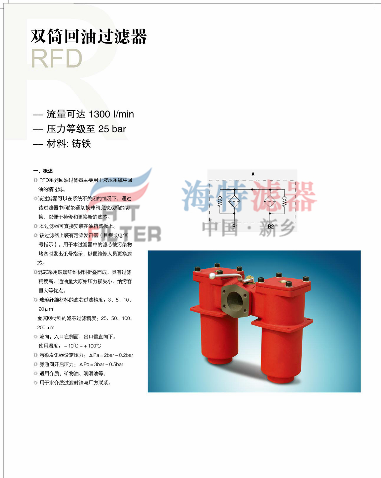 RFD雙筒回油過濾器,為我公司生產的國產替代賀德克過濾器,非原廠產品,需要原廠產品請聯(lián)系賀德克代理經銷商!